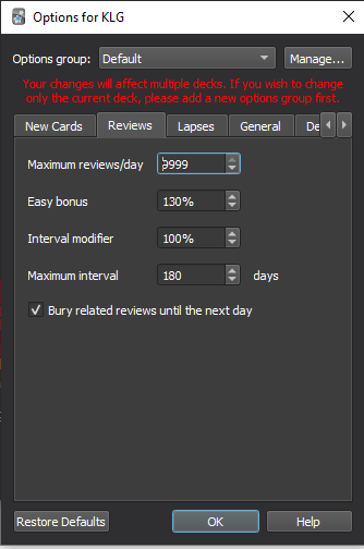 Maximum interval: asta înseamnă că cel mai îndepărtat moment în timp din ziua 1 (când ai învățat cardul) în care poți să trimiți cardul este ziua 180 (6 luni). Când ajungi în ziua 180 a cardului și apeși Good, vei trimite cardul la încă 180 de zile (nu sunt 100% sigură).