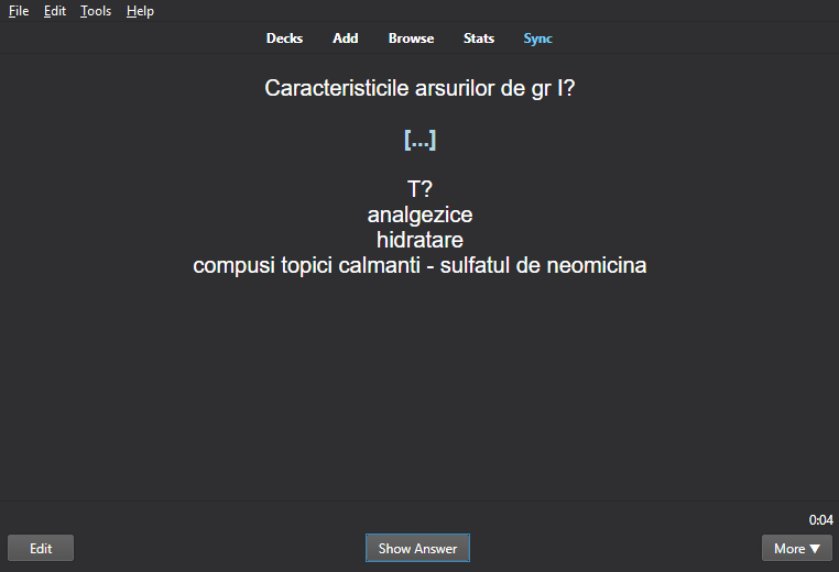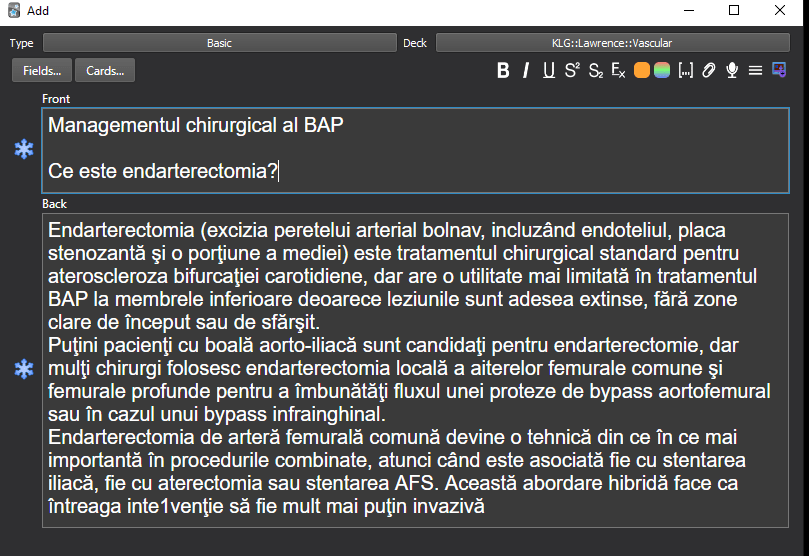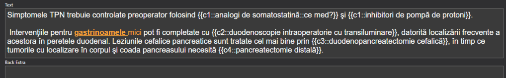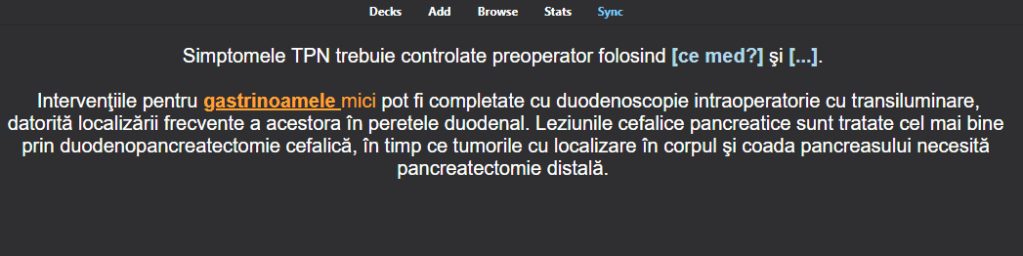 După cum am zis mai sus eu am folosit mai mereu Cloze Deletion, iar de acest addon m-am folosit ca să nu mai scriu mereu din ce parte a capitolului am extras fragmentul, în cazul de față „Managementul chirurgical al BAP”.