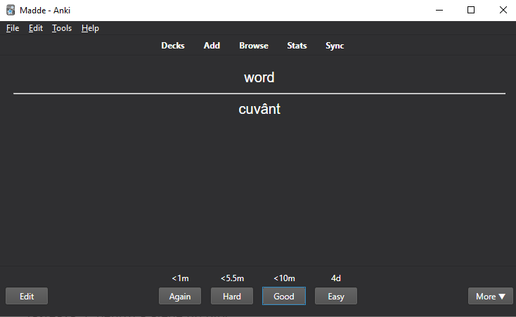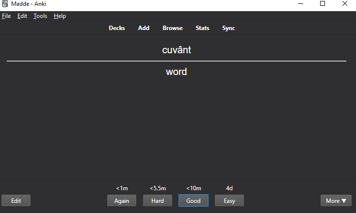 Un basic card imită cel mai bine ideea de flashcard. Ai întrebarea pe front, și răspunsul pe back. Eu nu mai utilizez tipul acesta de carduri pentru că ia mai mult timp și nici nu-mi este atât de util.