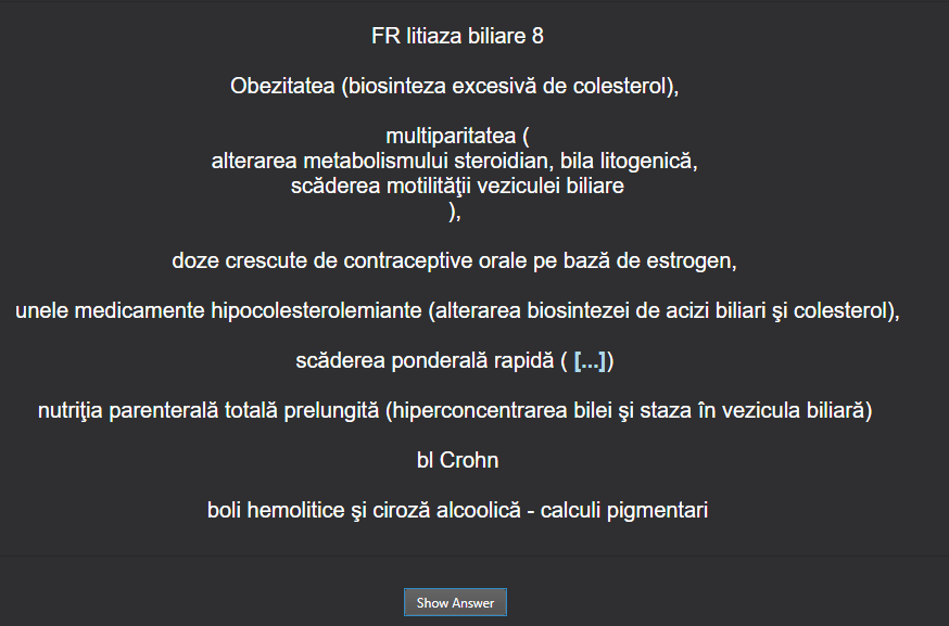 P.S. Mostra: Atașez capitolul „Ficat și Splină” din Lawrence drept exemplu. Faceți 10-20 de carduri noi zilnic, repetați zilnic, verificați-vă cunoștințele la finalul capitolului.