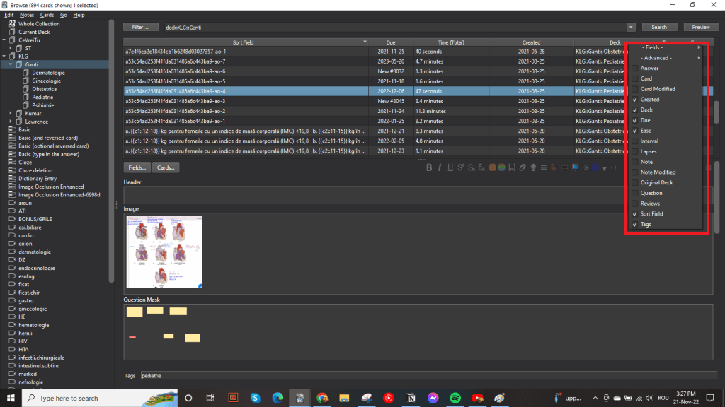 Am folosit de nenumărate ori această funcție, de cele mai multe ori fără să realizez. Cel mai util mi-a fost să văd cardurile create într-o anumită zi, dar și cât timp am stat cel mai mult pe anumite carduri. Cea din urmă poate fi utilă înainte de examen (rezidențiat sau nu) ca să mai arunci un ochi pe cardurile care ți-a fost cel mai greu să le reții.