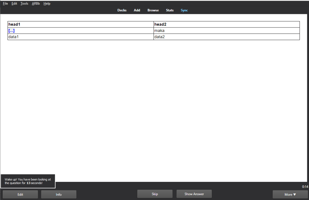 Dacă n-ai răspund în 13 secunde o să se audă un semnal audio, dacă trec 20 de secunde o să apară și un semnal vizual care te îndeamnă să te trezești 🙂 Dacă treci de 40 de secunde se trece automat ca și Again și vei repeta cardul.